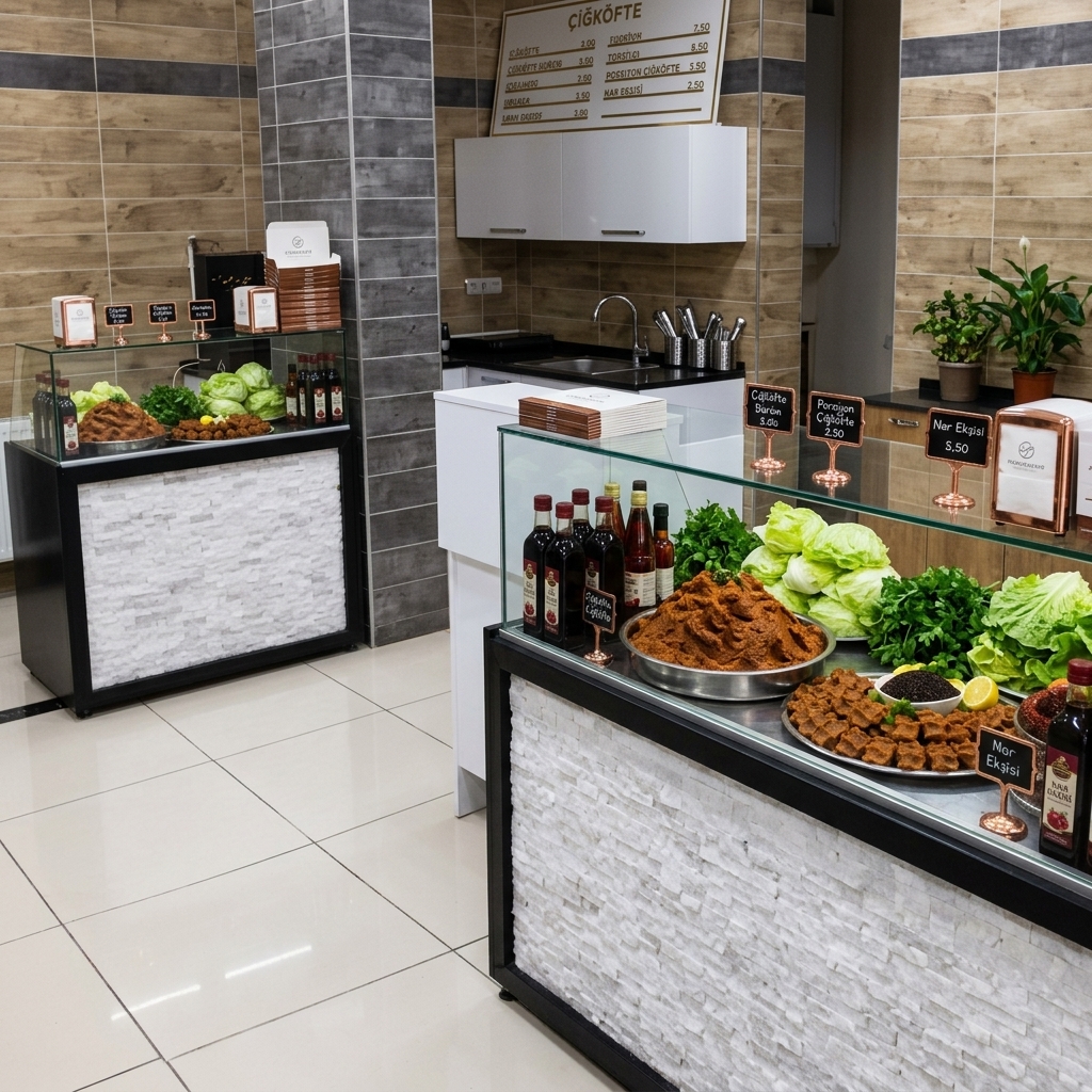İstediğiniz ölçüde ve istediğiniz malzemeler ile alanlarınıza özel olarak sıfırdan çiğköfte ve meze dolabı yaptırmak için bizimle iletişime geçebilirsiniz..